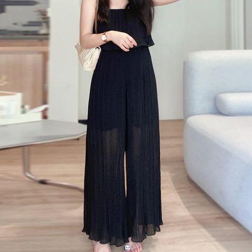 [머스트비]여성 루즈핏 잔주름 끈나시 점프슈트