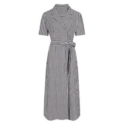[머스트비]여성 더블 버튼 체크 벨티트 반팔 원피스