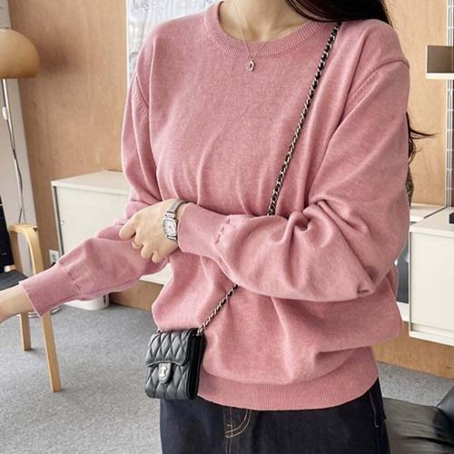 [셀럽하우스]베이직 OCZJ8455 데일리 여자 머슬핏 라운드넥 긴팔 니트티
