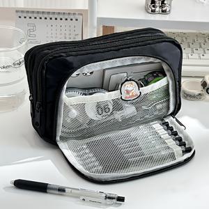 대용량 멀티 파우치 필통 20cm x 12cm x 7.5cm, 블랙