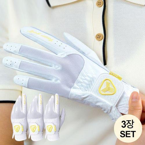 1+1+1 2202i 쿨메쉬 여름용 남성골프장갑 왼손전용, 화이트, 3개