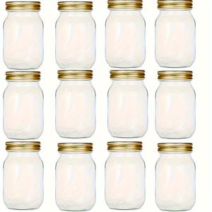 TEMU 6/12개, 16oz 유리 메이슨 자, 유리 보관 용기, 일반 밀봉 뚜껑이 있는 소스 용기, 잼, 샐러드 잼, 꿀, 샤워/결혼식 선물, 주방 가제트, 저렴한 품목 주방 액세서리