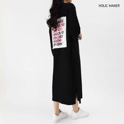 [모노무드]모노무드 은플레이스 원피스 드레스 라운드넥 홀릭메이커 HPNT002 롱 반팔