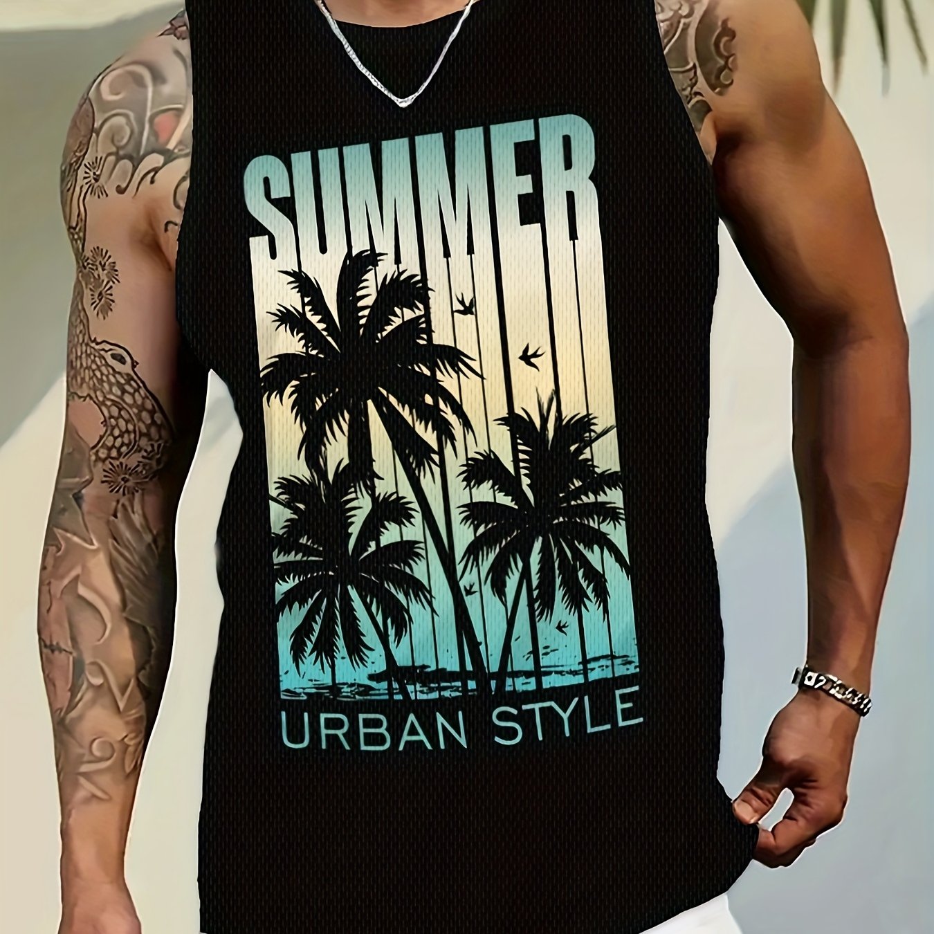 TEMU 남성용 캐주얼 민소매 티셔츠, 헤비 자수, 여름 스트리트웨어에 완벽