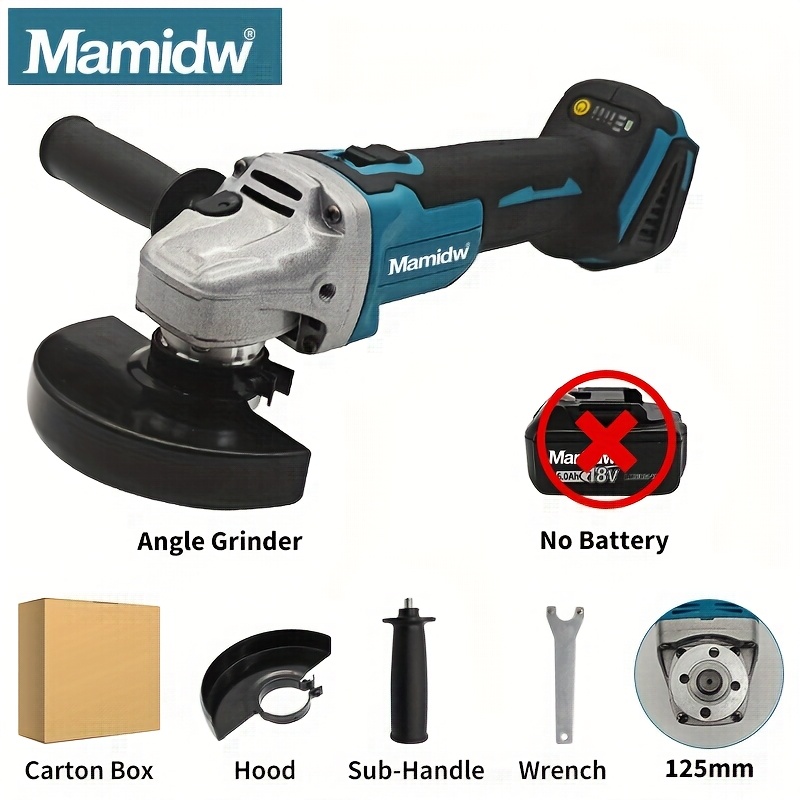 TEMU 마미드 무선 브러시리스 앵글 그라인더 125mm/100mm 헤비듀티 전기 그라인더 & 폴리셔, 18V 리튬이온 호환 (마키타 배터리) - 금속/목재 연마, 폴리싱 전동공구, 베어 툴 (배터리/전원 어댑터 미포함)