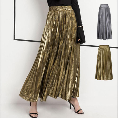 페미닌 메탈 주름 플리츠 밴딩 롱 포인트 스커트 3컬러