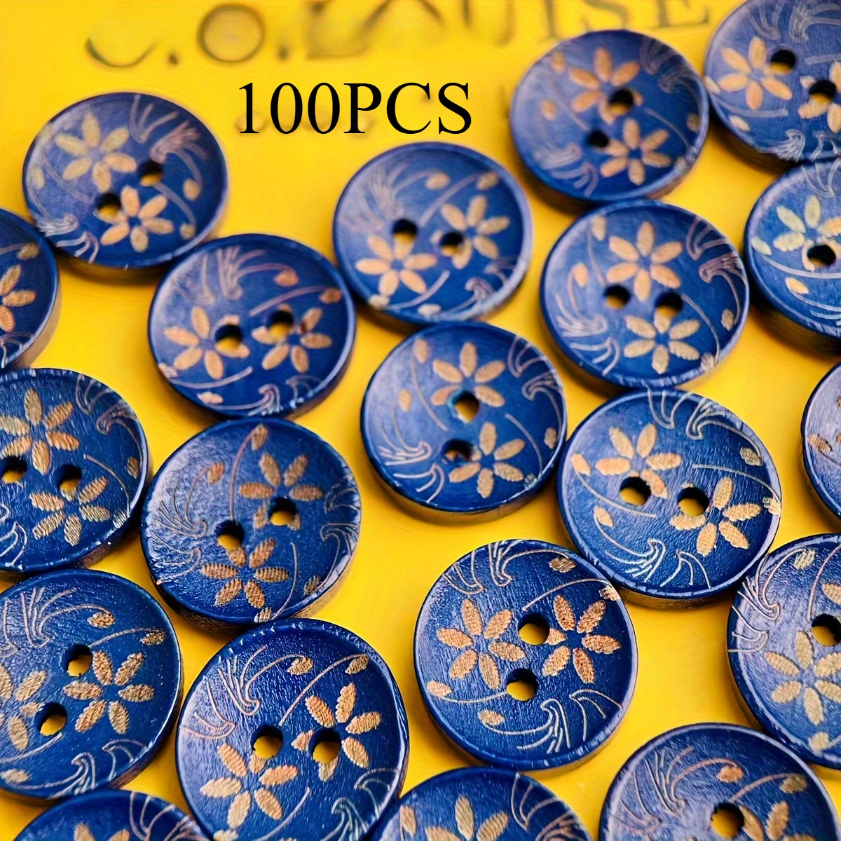 TEMU 100개 파란색 빈티지 조각 나무 단추 - 셔츠, 스웨터, 가디건에 이상적인 재봉 추가, 수제 의류 변환을 위한 완벽한 재료