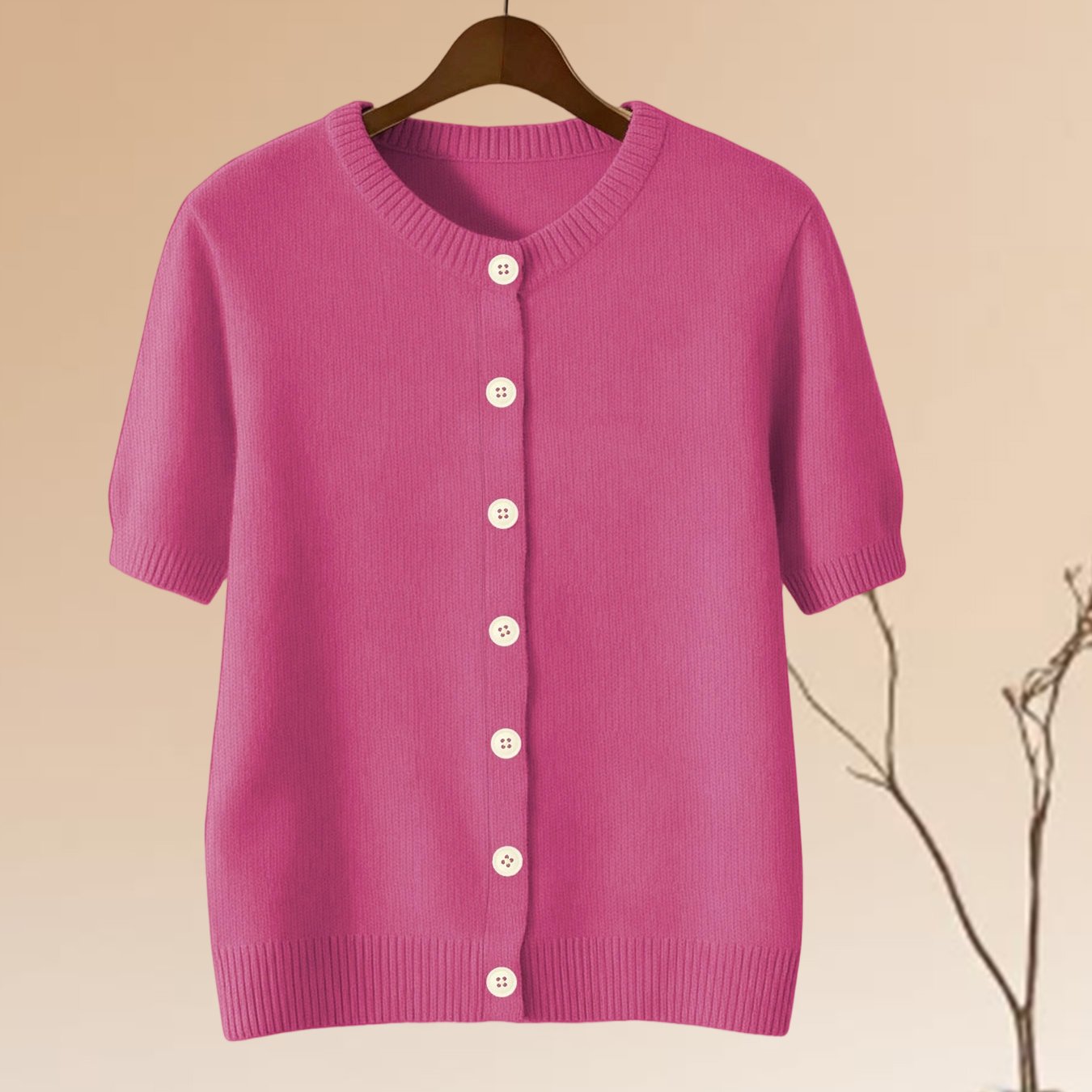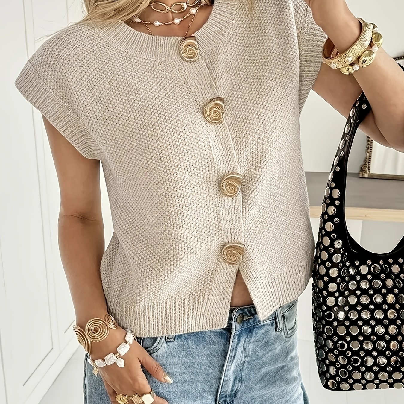 TEMU 새로운 여성용 캐주얼 버튼다운 반팔 가디건, 패셔너블하고 활용도 높은 니트웨어, 텍스처 디자인, 튼튼한 원단, 편안하고 부드러운 약간의 신축성 있는 소재, 트렌디한 스타일
