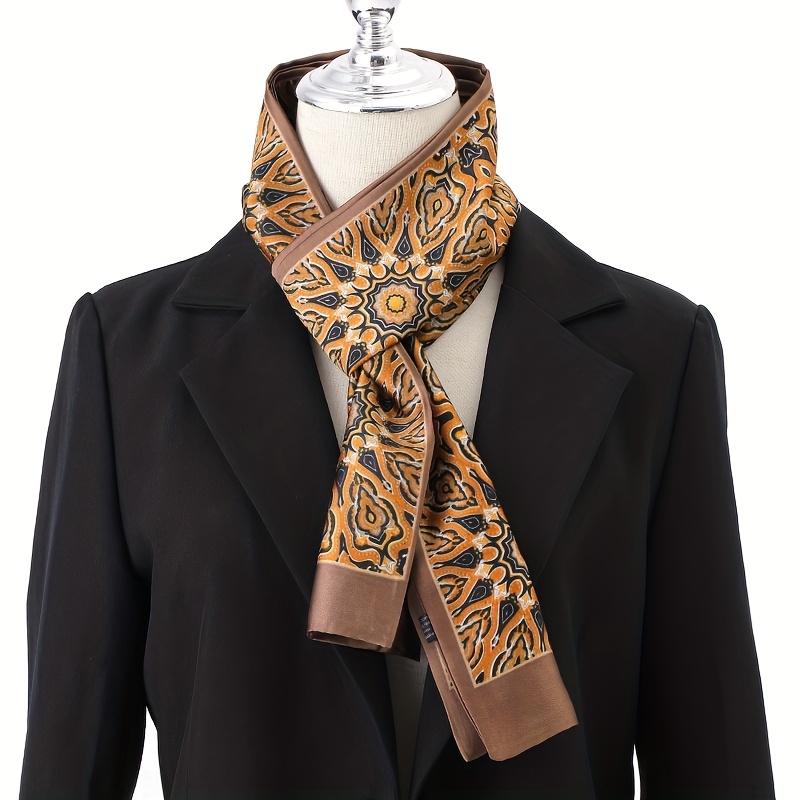 TEMU 우아한 검은색과 흰색 기하학적 실크 스카프 - 100% 실크, 통기성, 햇빛에 방지, 여성용 장식 목걸이, 야간 외출 액세서리|기하학적 패턴 스카프|싼뜨로 직물
