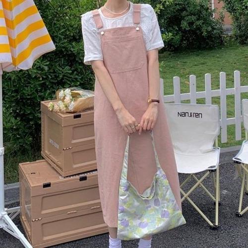 로로텐 코듀로이 멜빵 롱 원피스 뷔스티에 스퀘어넥 여성 빅사이즈