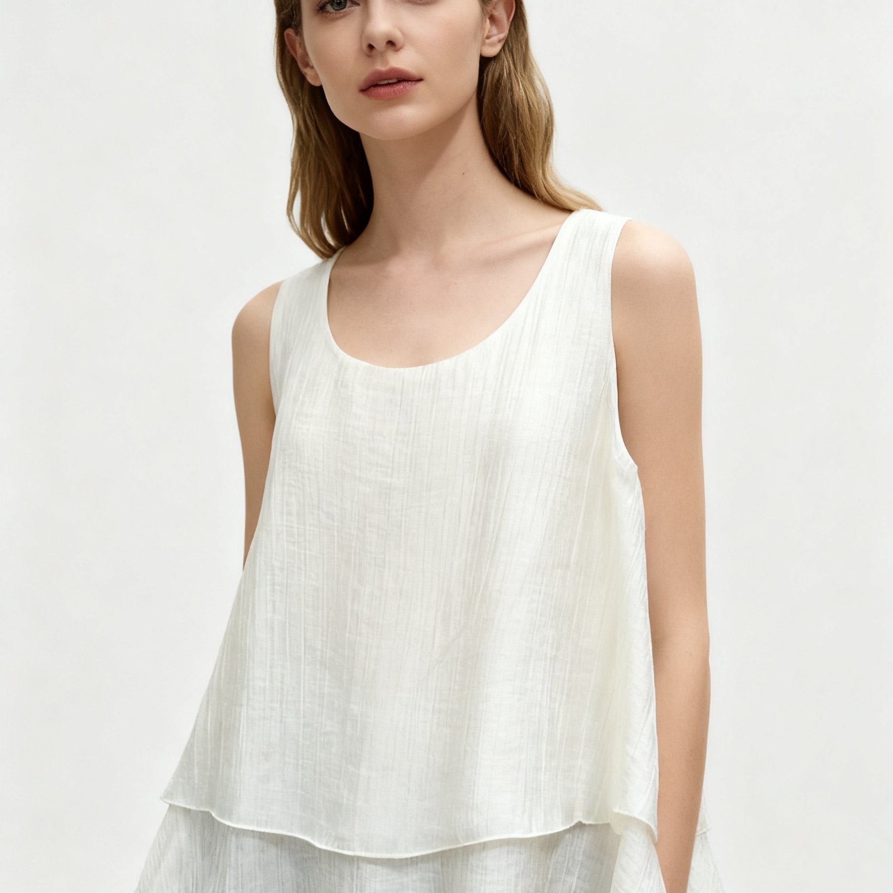 Latium HC06 A라인 이중 주름 민소매 데일리 나시 블라우스 T2523bl16LB