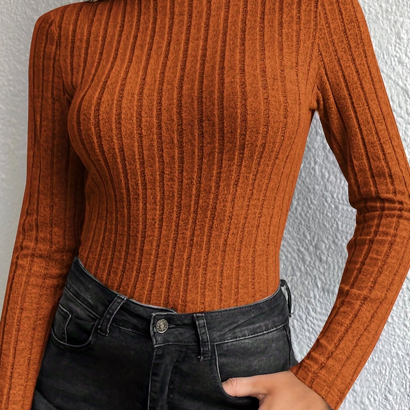 TEMU 여성용 슬림핏 하이넥 블라우스 - 솔리드 컬러 긴팔 탑, 세탁기 사용 가능 봄/가을 캐주얼 & 드레시 웨어, 오피스, 세미 포멀 이벤트용 테일러드 핏 - 논-스무스 텍스처 (즉시 배송 가능)