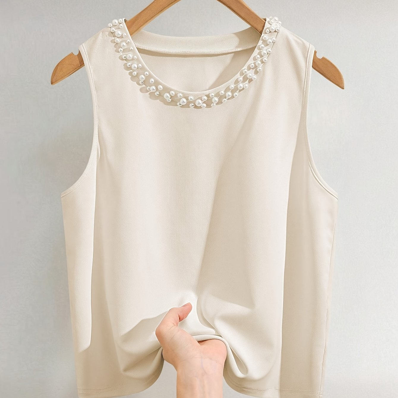 TEMU 플러스 사이즈 - 여성용 우아한 비즈 슬리브리스 탑, 스트레치 블라우스, 플러스 사이즈 친화적, 시크한 데일리 & 포멀 아웃핏 - 통기성 여름 셔츠, 라운드 넥라인, 편안한 핏, 스타일리시 블라우스, 패션 애호가를 위한 다용도 의류|나시티|여름블라우스|민소매