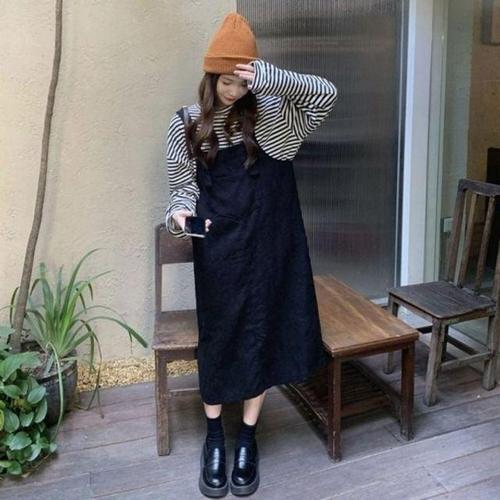 뒤트임 메이비굿 의류 멜빵치마 끈조절 코듀로이 WD5486E
