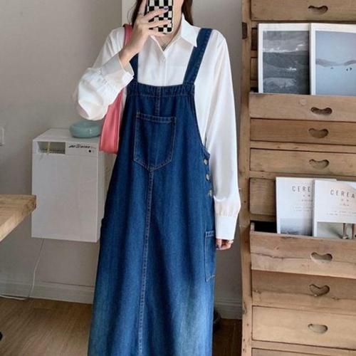 COSYEVNO 멜빵 데님 원피스 루즈핏 복고풍 문예 패션 봄 여성 롱 청스커트 nzq1512