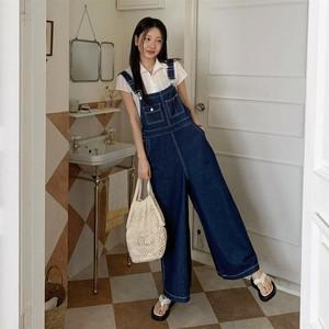 HA.M 여성 멜빵바지 루즈핏 데님 멜빵 점프수트 청바지 통바지