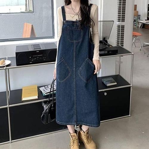 [엄지척]진청원피스 청청셋업 데님 롱 멜빵치마 마실용 원피스_19861418_667501