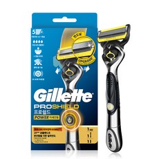 질레트 정품 프로쉴드 옐로우 파워 면도기 핸들 + 면도날 세트, 1세트