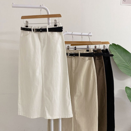 허니제이 / 벨트세트 페이앗 코튼 뒷트임 스판 롱 스커트(S-XL)