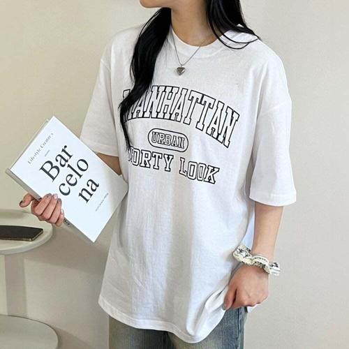 [셀럽하우스]여성 IIRZ8907 오버핏 순 면 여름 레터링 반팔 티 셔츠