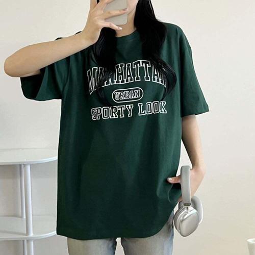 [셀럽하우스]여성 IOTD7669 오버핏 순 면 여름 레터링 반팔 티 셔츠 그린