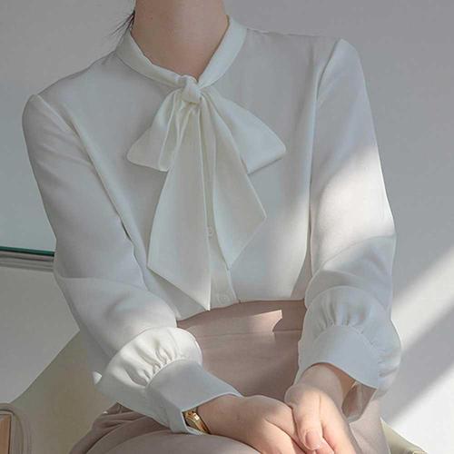 [셀럽하우스]리본 JBOR1320 블라우스 정장 오피스 면접 무지 셔링 긴팔 쉬폰