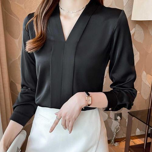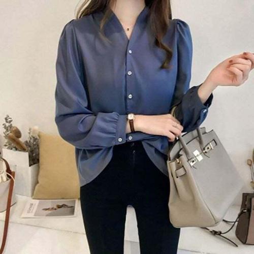 [셀럽하우스]긴팔 ZVWK6128 가을블라우스 브이넥 하객룩 블라우스 면접용 봄
