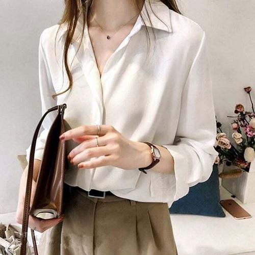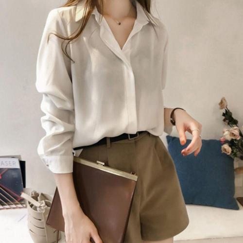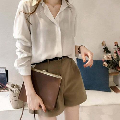 [셀럽하우스]여자 VIAW2283 깔끔한 블라우스 면접 화이트 셔츠 히든단추