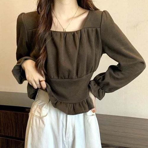 [셀럽하우스]긴소매 IJOL2431 코디 면접 정장 스퀘어넥 블라우스 셔링 셔츠
