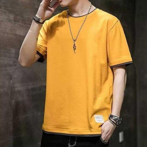남성용 라운드넥 반팔 면티 페이크 레이어드 배색 디자인 WFLMD3R