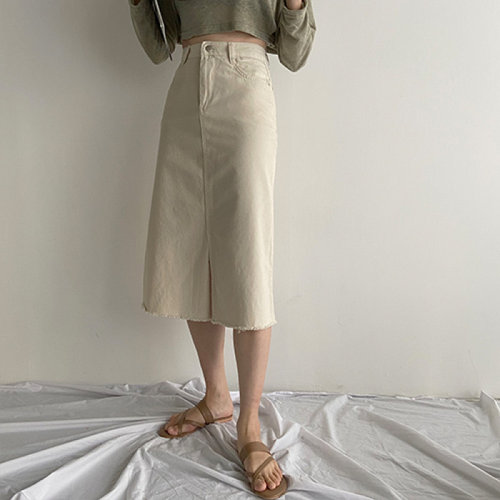 [신상오픈런]여성 뒤트임 스트레이트 바이오 코튼 가을 롱스커트