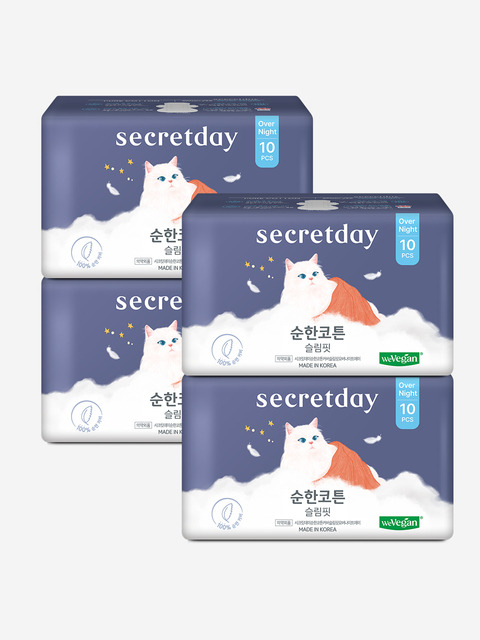 [시크릿데이] 시크릿데이 생리대 순한코튼 슬림핏 오버나이트 10PX4팩