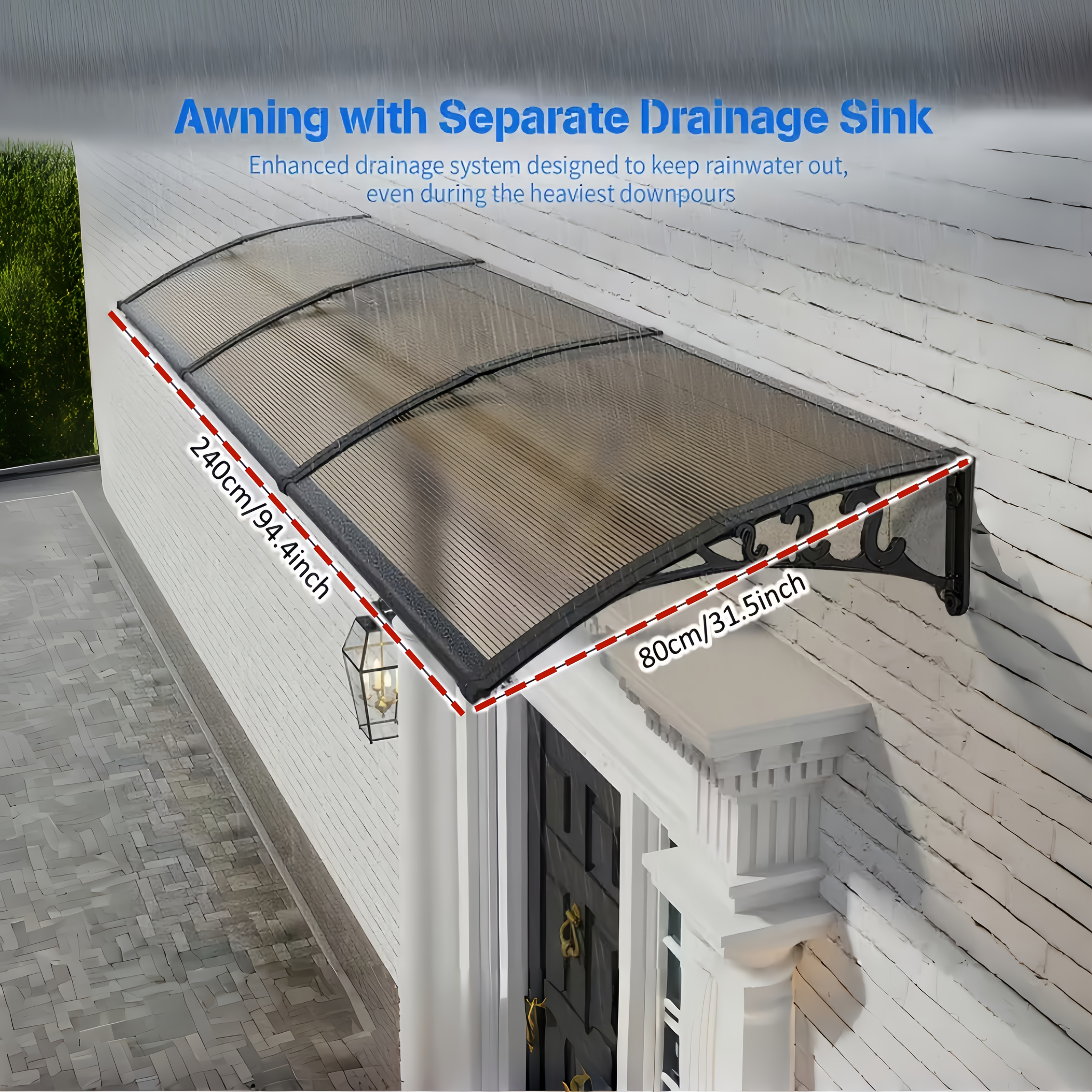 TEMU 80x240cm 헤비듀티 도어 차양 - 간편 설치 폴리카보네이트 야외 캐노피, 파티오용 햇빛 및 비 차단 커버, 문 입구 그늘,파티오 비 커버,스트림라인드 캐노피 디자인,세련된 날씨 차단막,내구성 있는 폴리카보네이트,강화된 차양 구조