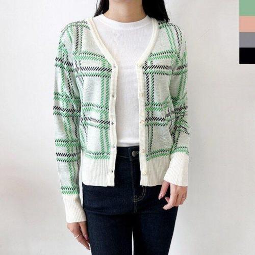 [모노무드]MNO 꽈배기패턴 V라인 듀얼컬러 노멀 여자 데일리뜨개탑 니트가디건