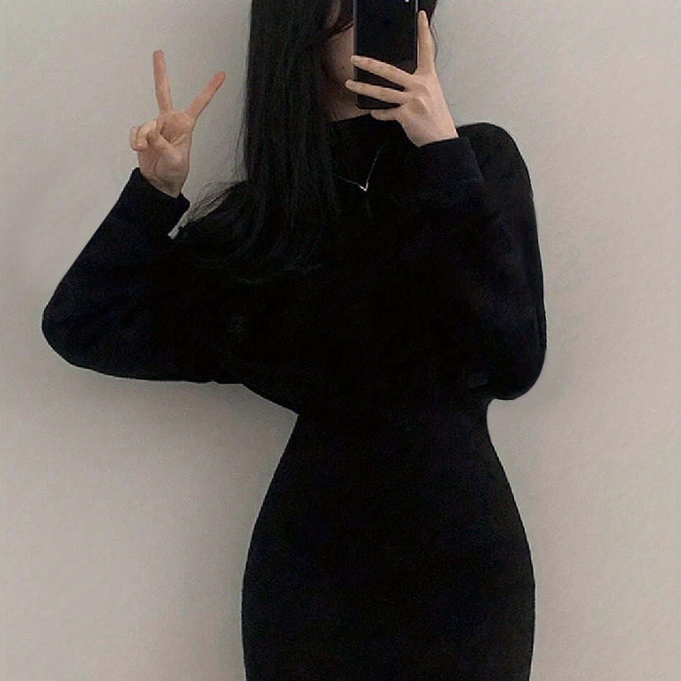 TEMU 블랙 다용도 핏 롱 슬리브 드레스, 신축성 있는 허리 라인과 바디콘 스타일|드레스