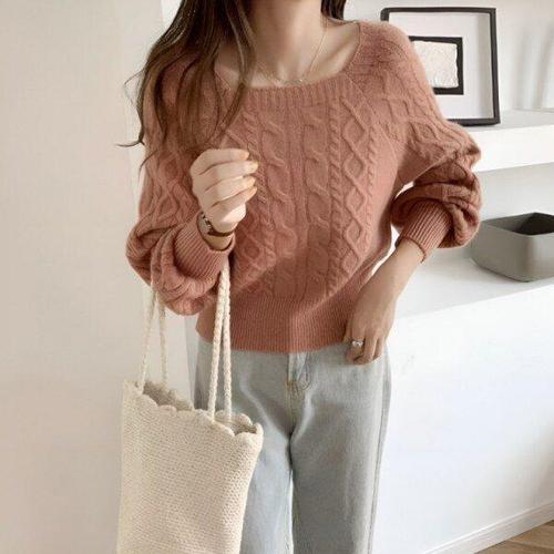 [모노무드]LMO 퍼프소매 시즌스퀘어칼라 케이블 스웨터