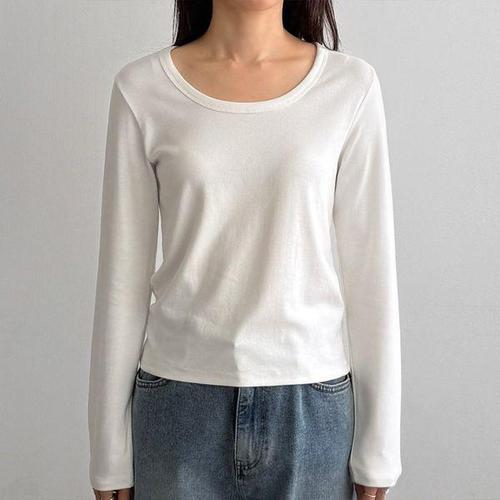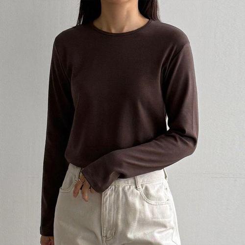 [유야]국산 워싱 면 모달 스판 무지 라운드 슬림핏 긴팔 티셔츠 기본티 이너티 -TS0875H- 여성 가을