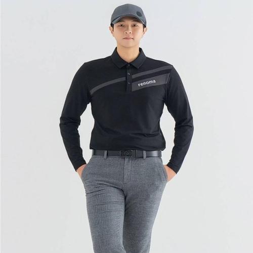 [레노마골프]레노마 골프 남성 가을 면 모달 소재 앞판 로고 사선 카라 긴팔 티셔츠 RMTYN3182