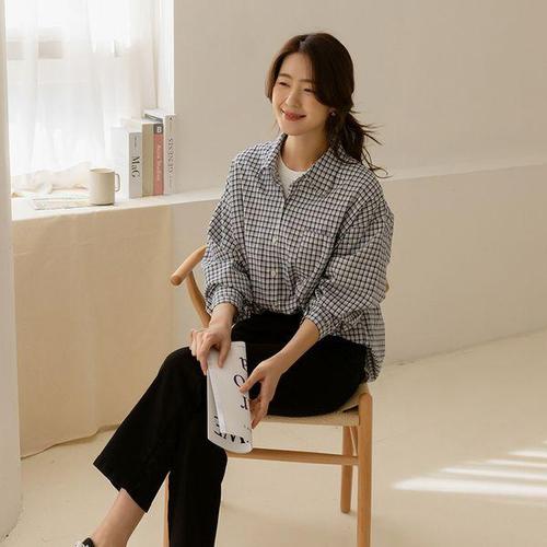 TEMU 플러스 사이즈, 플러스사이즈 여성 캐주얼 체크 셔츠