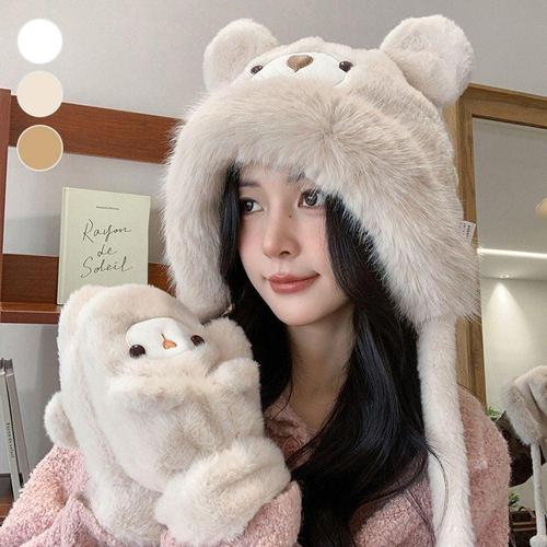 털모자 장갑 세트 겨울 곰돌이 방한 보온 따뜻 인조모 WFFZLQ1