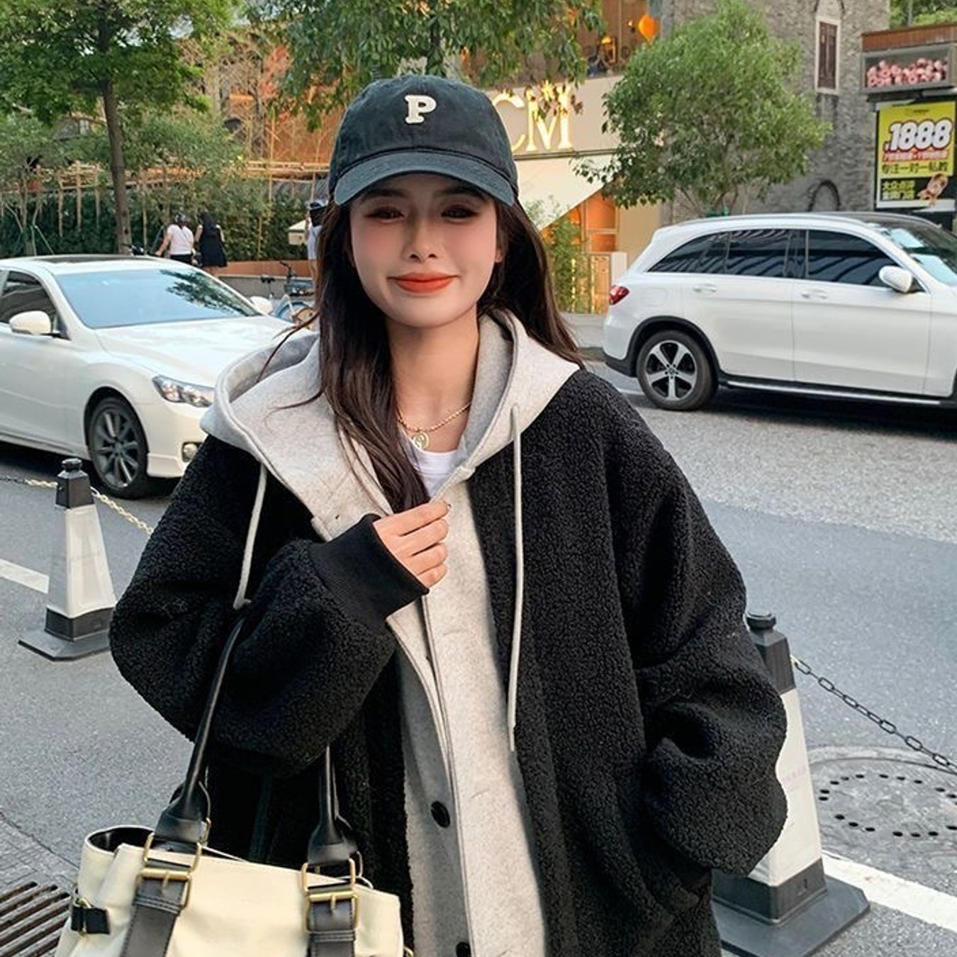 TEMU 겨울을 위한 램 플리스로 만든 새로운 롱 미드-렝스 후드가 달린 플리스 따뜻하고 느슨하게 착용 가능한 슬리밍 여성용 코트.