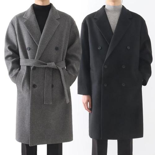 [지지블랙]로젤 프리미엄 울 오버핏 모직 허리 벨트 더블 롱 코트 로브코트 국내생산 ZZBCT006