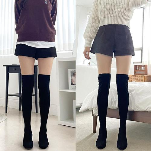 여자 겨울 하이웨이스트 모직 핀턱 짧은 반바지 A라인