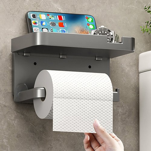 무타공 휴지걸이 화장실 두루마리 오픈형 선반 수납 거치 선반 그레이 N286