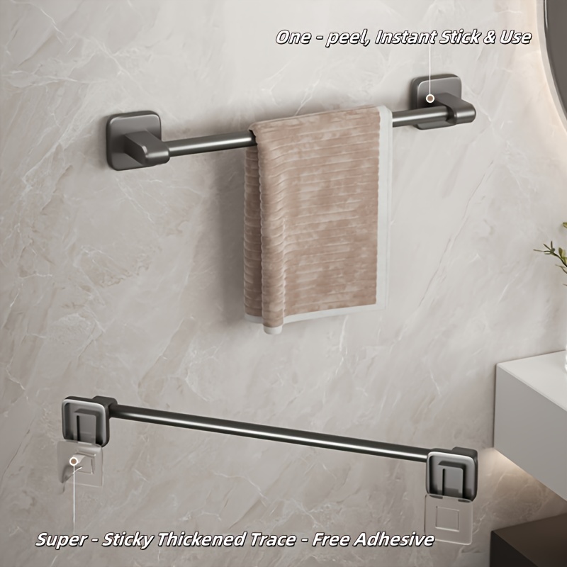 TEMU 알루미늄 무드릴 흡착식 타월 랙, 싱글 바 욕실 수납 선반|화장실선반