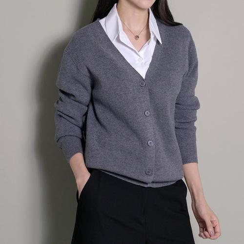 여성 패션 앞단추 브이넥 니트 가디건 스웨터 긴 소매 핏감 있는 밑단 시크한 아우터웨어 여성 상의