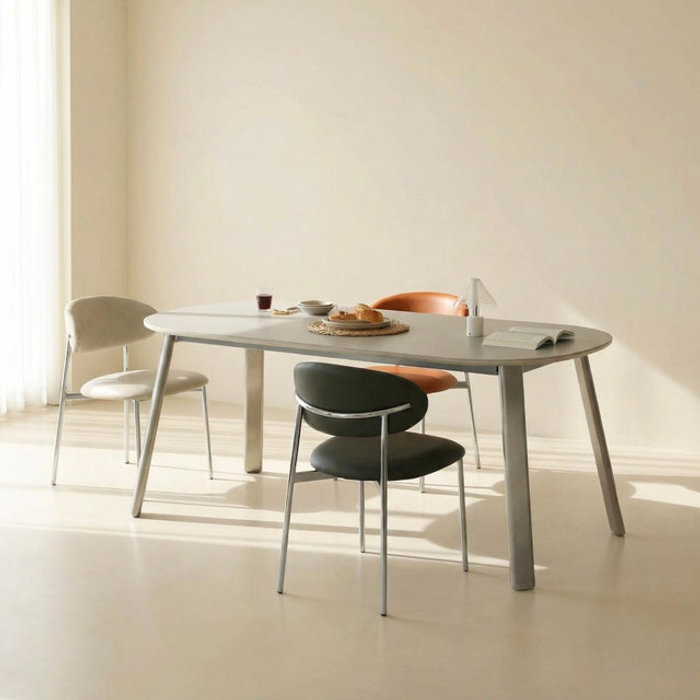 스톤엘 세라믹 식탁 무광 실버 타원형 테이블 웜그레이 1400
