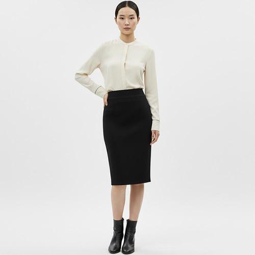 [샵앤][샵앤] 국산 여성 스판 중앙 절개 정장 오피스 무릎 스커트 NS-WSK-20850-블랙