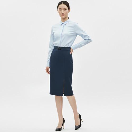 [샵앤][샵앤] 국산 여성 H벨트 앞트임 스판 정장 무릎 스커트 NS-WSK-20849-블루