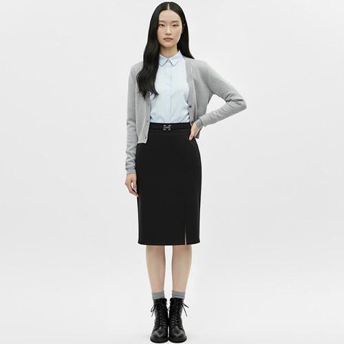 [샵앤][샵앤] 국산 여성 H벨트 앞트임 스판 정장 무릎 스커트 NS-WSK-20849-블랙